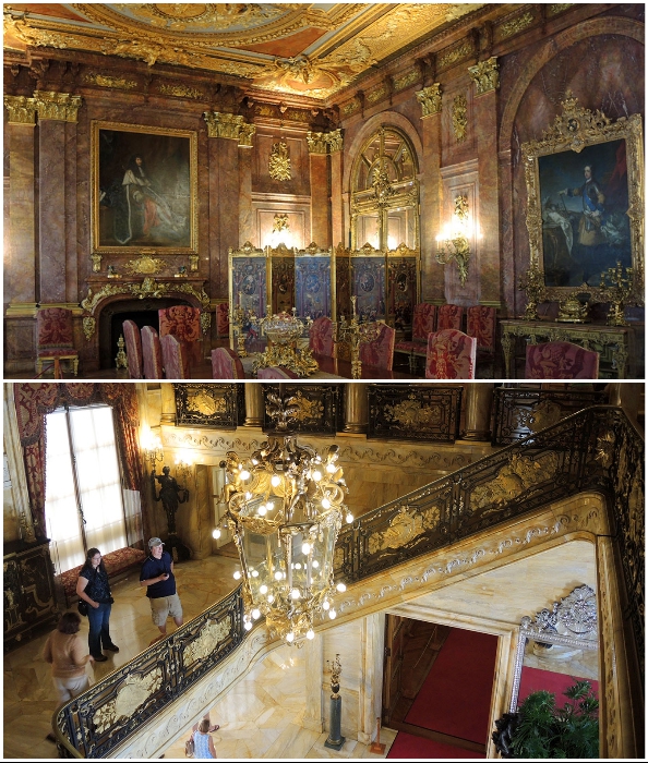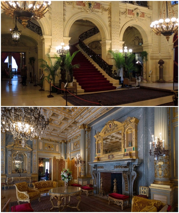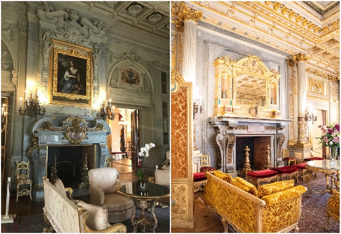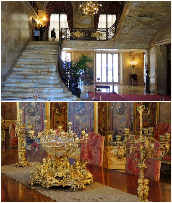 А их встречали действительно по-королевски – 50 роскошных комнат; огромный танцевальный зал; обеденный зал, рассчитанный на 70 человек; штат из 36 слуг, одетых в костюмы стиля Людовика XIV; колонны, лестницы и полы из самого дорогого итальянского мрамора; позолота везде и всюду; огромные зеркала; помпезные люстры; дорогая мебель; вычурный текстиль; антиквариат; произведения искусства и многое другое.