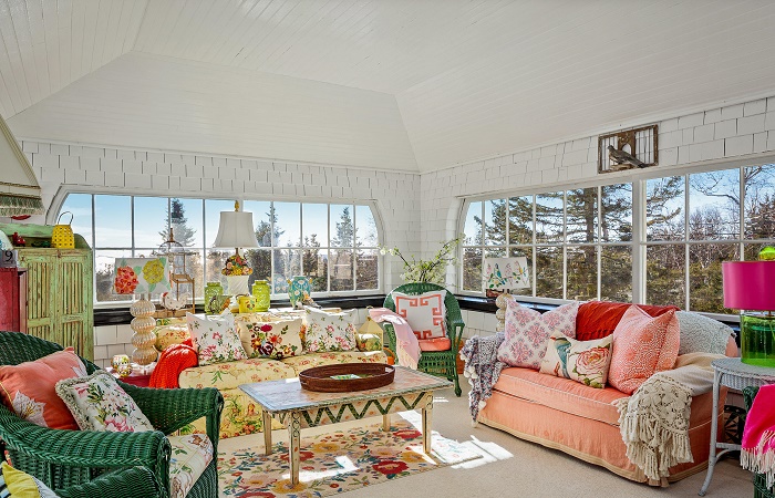 Интерьер в стиле традиционного английского дома по заказу семьи Траволты в 1999 г. оформлял модный дизайнер Кристофер Босхиарс. Поэтому не удивительно, что в нем преобладают зеленые, желтые и розовые тона, оборки и рюши, яркие диванные подушки, обои и шторы с цветочным орнаментом, антикварная мебель изящных форм и произведения искусств. Именно так супруги представляли уют летнего дома, в котором можно проводить отпуск или устраивать каникулы как для семьи, так и для компании из полсотни гостей.