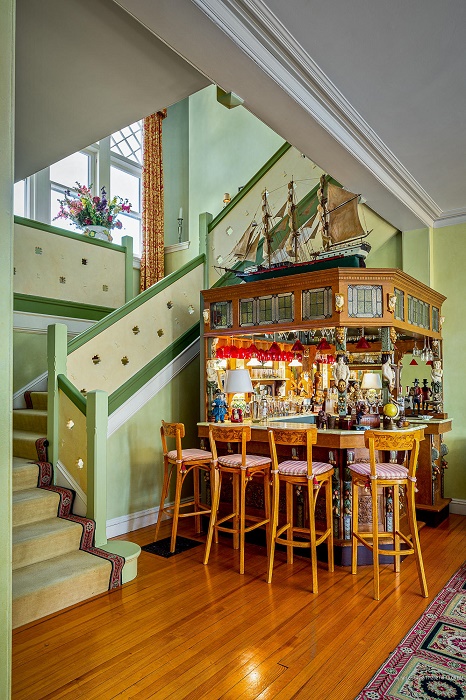 В особняке имеется настоящий бар, сделанный на заказ (Айлсборо, штат Мэн). | Фото: thenewenglandreco.com.