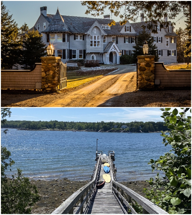 В поместье имеется старинный дом, лесные угодья, собственный пляж и пирс (Айлсборо, штат Мэн).