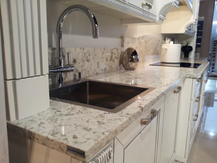 Современный тренды дизайна предлагают множество красивых и оригинальных вариантов рабочих поверхностей для кухни. Однако не все из них практичные и подходящие. Например, деревянные или металлические столешницы выглядят очень эффектно и необычно, но быстро царапаются и изнашиваются, теряя всю свою привлекательность. Даже больше популярностью пользуются столешницы из акрилового искусственного камня, однако те, кто установил себе такую на кухне часто разочаровываются внешним видом, который не стоит заявленных денег и быстрой изнашиваемостью этого материала. Опытные дизайнеры рекомендуют устанавливать на кухне рабочую поверхность из кварцевого агломерата — это прочный, надежный и износостойки материал, который чрезвычайно сложно испортить, поцарапать или повредить каким-либо другим образом и при этом он очень красиво добротно выглядит.