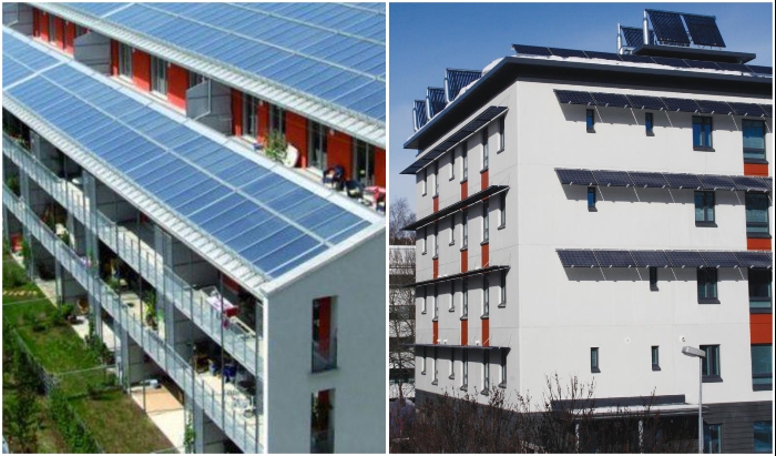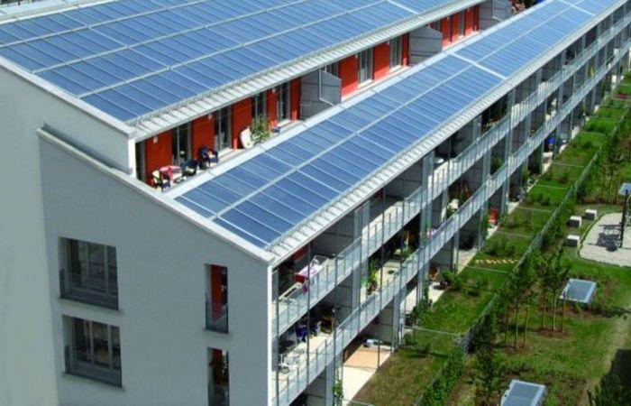 Плюс ко всему объект расположили так, чтобы основной скат крыши «смотрел» на южную сторону, которая не затеняется ни навесами, ни близко расположенными зданиями, ни деревьями. Именно на ней и располагаются фотогальванические панели и солнечные тепловые коллекторы, придающие солнечную радиацию к преобразующим системам, надежно спрятанным внутри здания, так что энергонезависимые объекты ничем не выделяются среди привычных сооружений. Только козырьки с фотоэлементами на южном фасаде здания смогут рассказать о том, что жильцам крупно повезло и они избавлены от необходимости платить немалые деньги за коммунальные услуги.