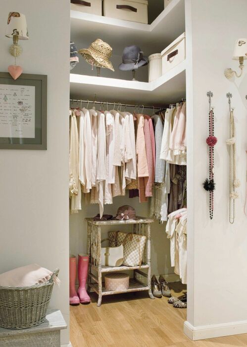 С правильным подходом даже в маленькой комнате можно организовать гардеробную. /Фото: i.pinimg.com Для многих людей гардеробная — важная и неотъемлемая часть дома, без которой не так комфортно и удобно. Однако в квартирах с ограниченным пространством всегда остро встает вопрос, где разместить большое количество одежды и не стоит ли ограничиться исключительно шкафом. Novate.ru предлагает убедиться в том, что не нужно отказывать себе в удовольствии организации гардеробной в любом доме. Подборка красивых и необычных идей поможет воплотить в жизнь любые мечты.