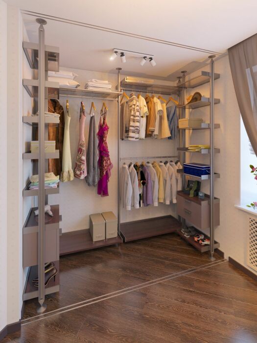 Полезная информация: В комнате с открытой планировкой или квартире-студии подобная гардеробная может сыграть роль перегородки для зонирования пространства.