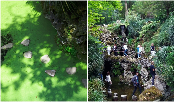 Иногда камни показываются над водой, и тогда смело можно начинать шагать только с левой ноги (Quinta da Regaleira, Синтра).
