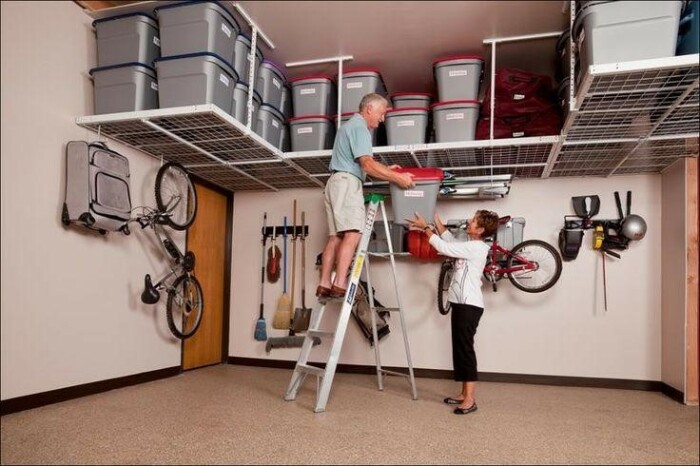Определение зон – только половина дела, их теперь нужно организовать так, чтобы было удобно пользоваться. Правило здесь простое: чем чаще пользуются вещами, тем ближе они должны находиться. Так, повседневные мелочи, которые требуются постоянно, помещают на стеллажи в пределах легкой досягаемости. Редко используемые и крупногабаритные предметы убирают в такую область, где они не мешают передвижению и не несут риска случайного повреждения машины. Идеальное решение – размещение на верхней полке стеллажей или подвешивание под потолок. При этом над автомобилем должна быть «мертвая зона», чтобы на крышу ничего не свалилось.