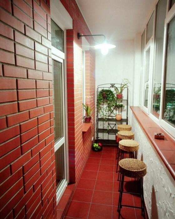 На балконе вполне можно организовать оригинальную лаунж-зону с небольшой барной стойкой, высокими стульями и стойкой с прохладительными напитками. Не лишним будет поэкспериментировать с цветами и отделочными материалами, лучше, если обстановка станет отличаться от остальной квартиры и больше будет напоминать ресторанную или барную. Это позволит отвлечься от рутины и представить, что отдыхаешь вне дома.