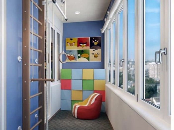Любому ребенку, а особенно подвижному и энергичному, требуется больше пространства для веселья, игр и спортивной нагрузки. Все это без ущерба порядку и красоте основных комнат можно обеспечить с помощью правильно оборудованного балкона. Там можно разместить уголок для творчества, занятий спортом, мини-замок или шалаш индейцев, тайное место или письменный стол для подготовки уроков.