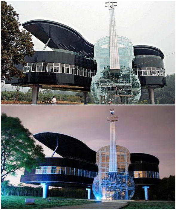 Неординарное творение, созданное в масштабе 1:50, призвано не только выполнять функцию культурного центра, но и украсить недавно отстроенный район города, а также привлечь внимание общества и туристов. Как показало время, со всеми этими задачами объект под названием – Рiano and Violin Shaped Building справился на ура. И пусть его не считают шедевром мирового зодчества, но он ярко заявил о себе и даже вошел в неофициальный список удивительных явлений архитектуры, правда, как необычное здание.