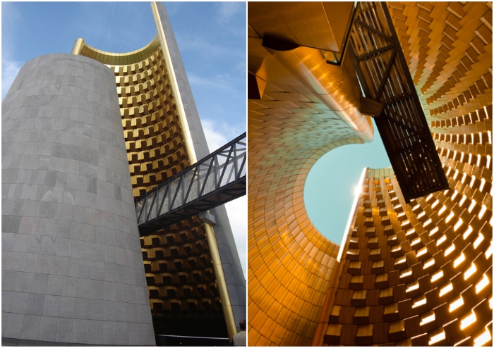 Примечательно: Массивное здание и его многочисленные металлические паруса покрыты более чем 12 тыс. панелями из нержавеющей стали.