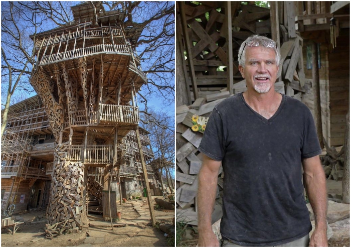 «Небоскреб на дереве», или Как живется энтузиасту в 80 комнатах, которые он построил по божьему велению - Архитектура и интерьер » Дизайна и строительство.