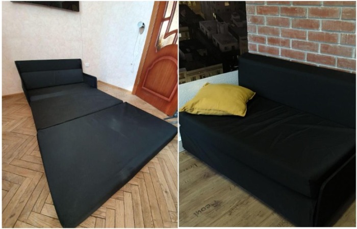 Диван не оснащен дополнительными ножками, поэтому раскладывается прямо на пол