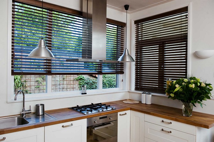 Жалюзи часто выбирают хозяева квартир, чьи окна находятся на солнечной стороне, так как они хорошо защищают от излишнего света. В отличие от классических штор, их можно настроить таким образом, чтобы они в любое время суток пропускали свет или, наоборот, затемняли помещение, то очень важно, если ваш рабочий стол с компьютером стоит возле окна. Кроме того, алюминиевые жалюзи являются противопожарными, легко и быстро моются, поэтому считаются идеальным вариантом для кухни. Когда будете выбирать жалюзи для других комнат, советуем отдать предпочтение не классическому белому варианту, который визуально превращает комнату в офис, и экземплярам из дерева или бамбука. Они выглядят стильно, экологично, прекрасно вписываются практически во все стили интерьера. Также жалюзи помогут создать красивую игру света и тени, от чего атмосфера в помещении только выиграет.