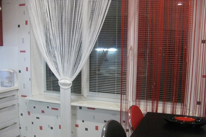 Нитяные шторы можно красиво собрать по желанию. / Фото: imbuilder.ru