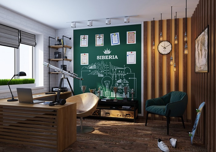 Не стоит забывать, что краска – отличный способ зонировать помещение. Поэтому, если вдруг вам нужно создать в гостиной или спальне мини-кабинет, воспользуйтесь помощью краски для школьных досок и краски с эффектом магнита. Через несколько часов вы получите отличную рабочую зону как для ребенка, так и для взрослого. Покрасьте стену краской для школьных досок в несколько слоев и подождите некоторое время, пока она высохнет. С помощью малярного скотча отделите область, которая будет окрашена магнитной краской и приступайте к ее нанесению. Делайте это в три этапа, дожидаясь полного высыхания каждого слоя. Для работы используйте валик с коротким ворсом, чтобы было удобнее.