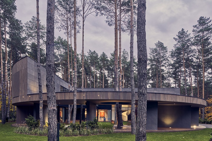 Среди густых сосновых лесов в Польше завершилось строительство необычного круглого дома под названием Circle Wood. Архитектору удалось гармонично вписать его в дикий ландшафт, чтобы владелец загородной резиденции мог чувствовать себя отрешенным от суетного мира, и его не покидало ощущение постоянной прогулки по лесу. Домочадцев также порадует внутренний двор, скульптурная лестница, мансардные окна и много интересных деталей, которые вряд ли встретишь в традиционном жилище.