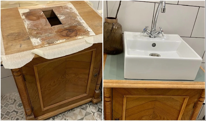 Уже не раз говорилось о том, что не стоит избавляться от старой добротной мебели, даже если она потеряла привлекательность и больше не вписывается в интерьер современной квартиры. В такие предметы любители реставрации стараются вдохнуть в них новую жизнь. Как это сделали сестры, которым удалось преобразовать совсем потрепанную тумбу, приспособив ее под раковину в ванной. А что из этого получилось – далее в обзоре.