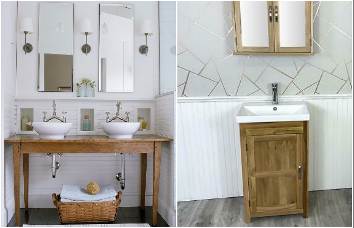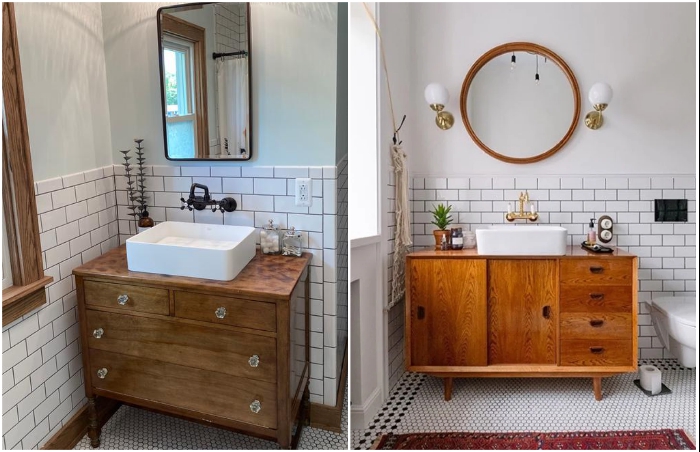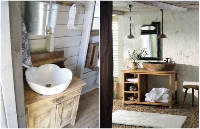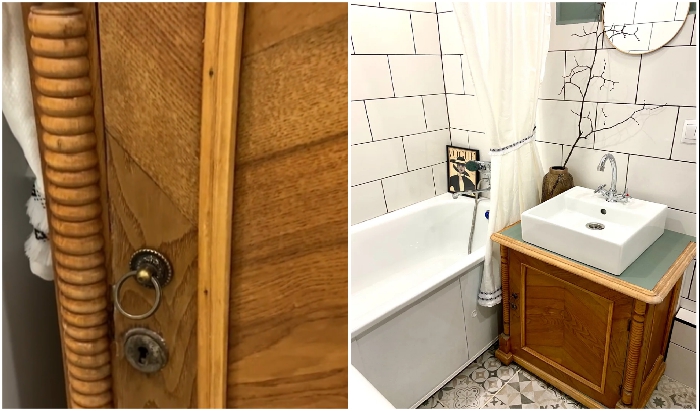 Чтобы придать своему творению завершенный вид, была приобретена соответствующая фурнитура, очаровательный дозатор для мыла и ваза с оригинальной веточкой, которая отвлекает внимание от недочетов и косяков. Старые предметы мебели, отреставрированные и адаптированные под установку раковин, стали новым трендом в дизайне ванной комнаты. Чтобы создать собственный шедевр, можно вдохновиться уже воплощенными в жизнь идеями и взяться за работу.
