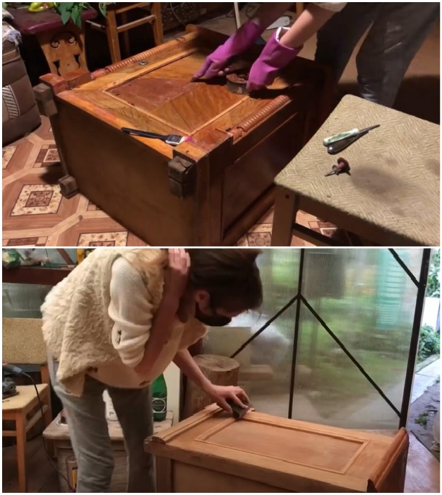 Девушка давно мечтала установить ретро-тумбу под раковину в ванной, но никак не попадался подходящий вариант, а приобрести подобный комплект было очень дорого. Но в один летний вечер ей улыбнулась удача - ей досталась добротная тумбочка, хотя и в очень плачевном состоянии. В таком виде ее использовать было нельзя, поэтому Мария с сестрой принялись ее реставрировать. В этом деле у девушек есть определенный опыт, поэтому в доме нашелся подходящий инструмент и материалы.