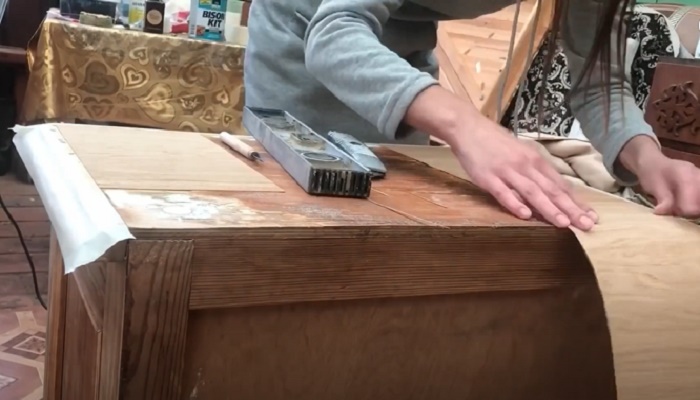 Отверстия от надстройки нужно замаскировать и выровнять плоскость с помощью мебельной шпаклевки.