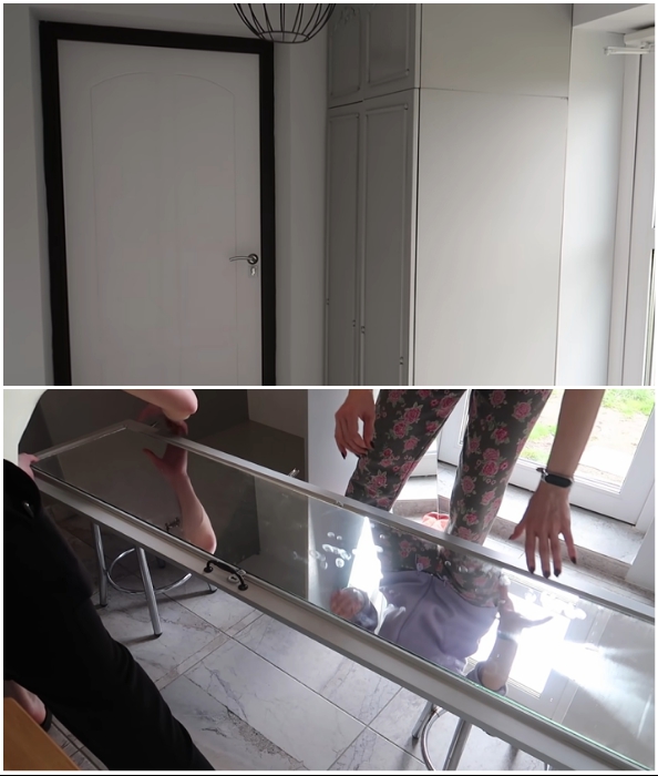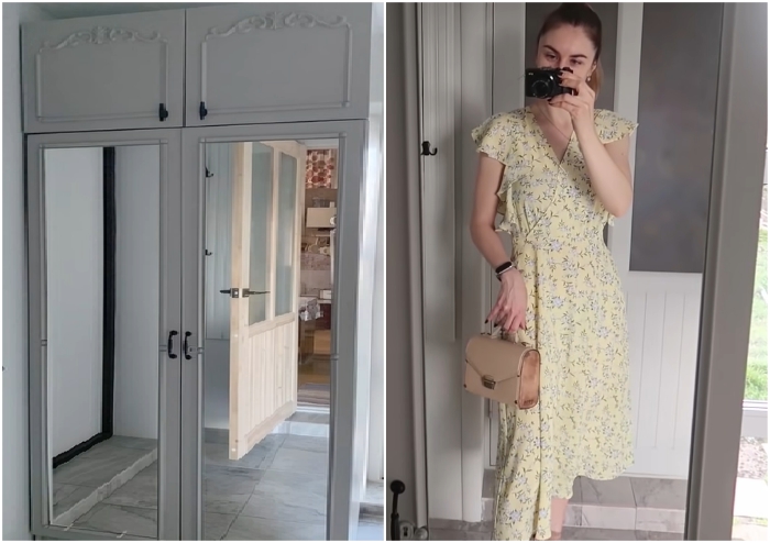 Полученный результат не очень обрадовал хозяйку, поэтому она решила на двери наклеить зеркала.