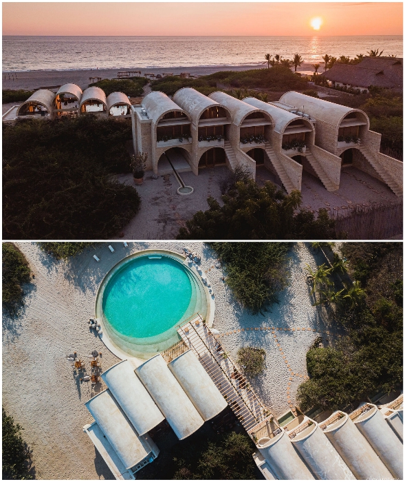 Рядом с портовым городом в Мексике открылся новый бутик-отель, который привлекает арочными номерами, созданными местными мастерами с использованием древней технологии строительства и в соответствии с традициями декоративно-прикладного искусства. Casona Sforza сочетает в себе гостеприимство, комфорт и элегантность в тандеме с умиротворяющей обстановкой, где колоритный дизайн арочных силуэтов гостиничного комплекса явно напоминает жилища людей древних цивилизаций, гармонично интегрированных в живописное побережье Тихого океана.
