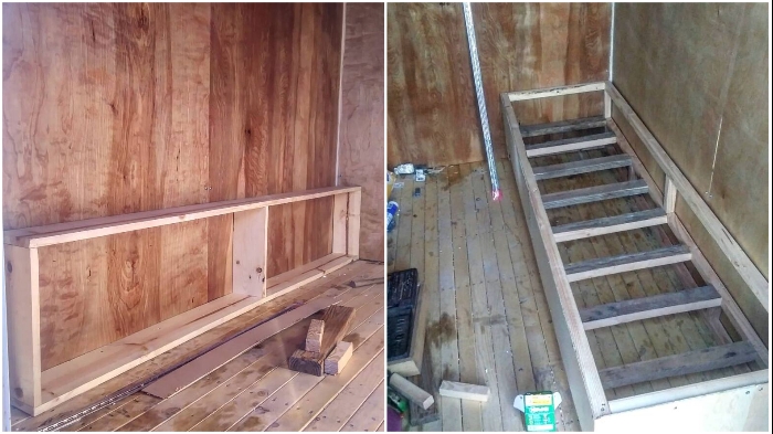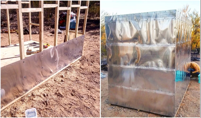 Поскольку у них уже имелся грузовик, оставалось лишь сделать надежную платформу из досок и начинать собирать каркас будущего домика. Для этих целей они приобрели 1 куб пиломатериалов самого низкого сорта (в целях экономии), которые полностью и разошлись. После того как деревянный каркас был собран, супруги обтянули конструкцию рулонным алюминием и закрепили его специальными шпильками. А вот швы пришлось заклеивать алюминиевой гидроизоляционной лентой, чтобы ни влага, ни ветер не могли проникнуть внутрь жилого пространства.
