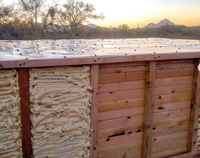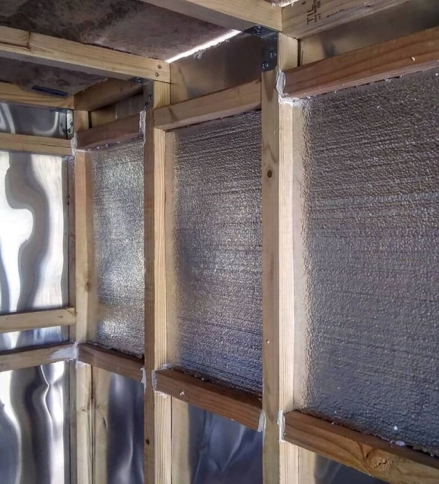С помощью фольгированного пенофола утеплили стены и потолок. | Фото: boredpanda.com.