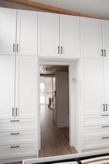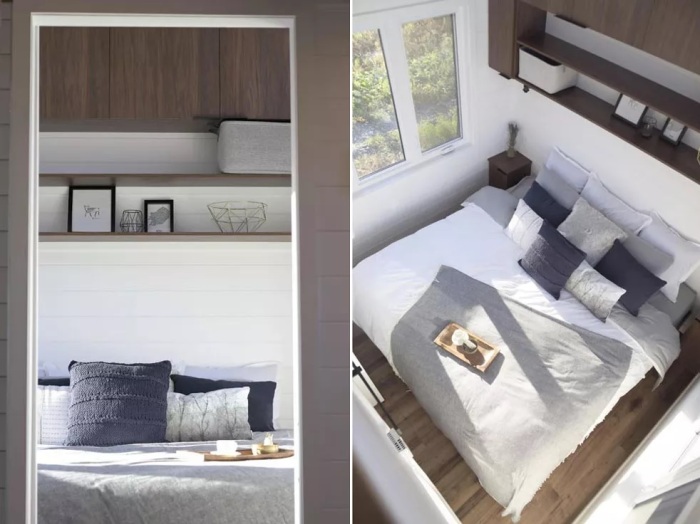 Перегородкой между жилым пространством и спальней служат вместительные шкафы (Magnolia V8). | Фото: newatlas.com.