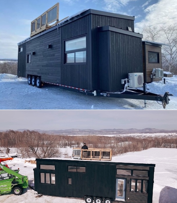 Компания Minimaliste превратила одну из своих моделей tiny house в комфортабельную виллу с террасой на крыше (Magnolia V8).