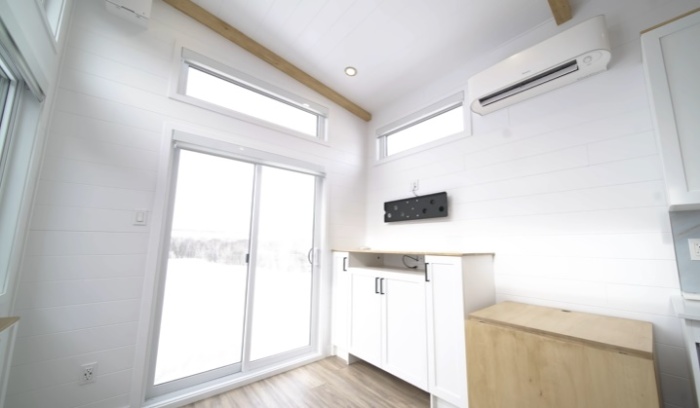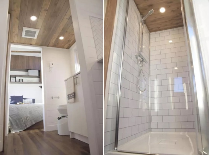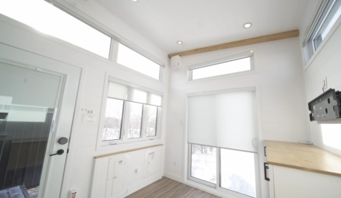 По сведениям авторов Novate.ru, из-за ограничений, связанных с постройкой на базе колесного прицепа, большинство крошечных домов имеют ширину около 2,6 м. А это означает, что проектировщикам приходится изрядно поразмыслить над оптимизацией пространства: где и как разместить вещи и необходимые жилые зоны, чтобы и комфорт не пострадал, и оставалось место для передвижения. Поскольку канадские специалисты решили создать роскошную резиденцию на колесах, им пришлось отступить от норм и увеличить ширину домика до 3,2 м. С одной стороны – дополнительное пространство расширило возможности для обустройства интерьера, а с другой – стало проблемой для владельца, ведь для его буксировки понадобится специальное разрешение и сопровождение. Но это, пожалуй, единственный минус, который можно найти в этой модели.