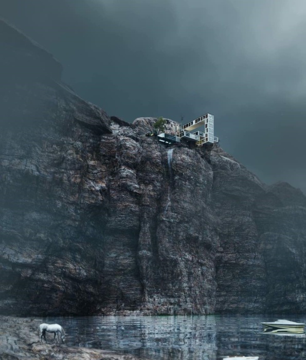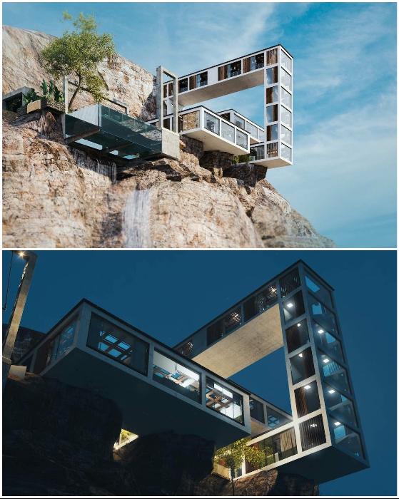Дерзкая архитектурная концепция «Горного дома», который свисает с крутого утеса (концепция архбюро Milad Eshtiyaghi). | Фото: miladeshtiyaghi.com.