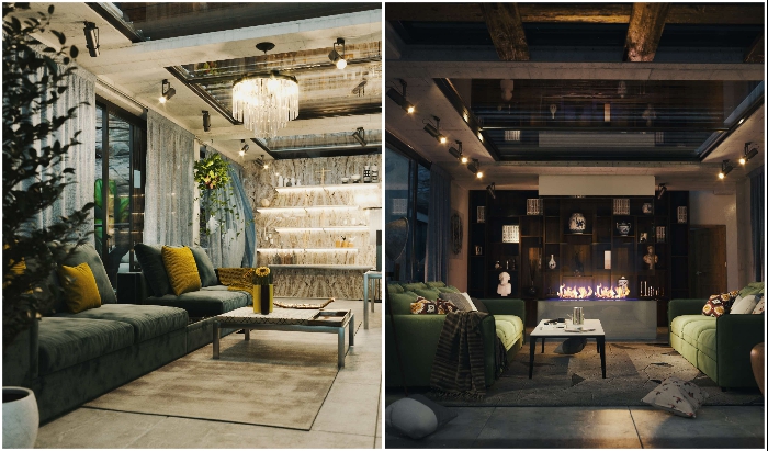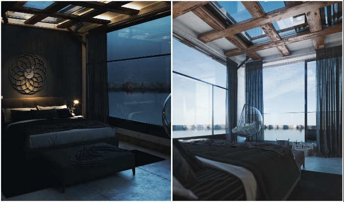 Концептуальный проект предусматривает современный стиль дизайна. Необработанный бетонный пол, обилие стекла, массивные деревянные балки, напоминающие перголы, декоративные панели из благородных пород деревьев, изысканные аксессуары, дорогой текстиль, роскошная мебель – все это помогает создать особенную роскошь. Это не единственный фантастический концептуальный проект, поражающий своими формами и эксцентричной интеграцией футуристического особняка в природный ландшафт. Российский архитектор, например, разработал целую серию проектов уникальных загородных домов и эко-отелей, которые в прямом смысле слова сливаются с природой.