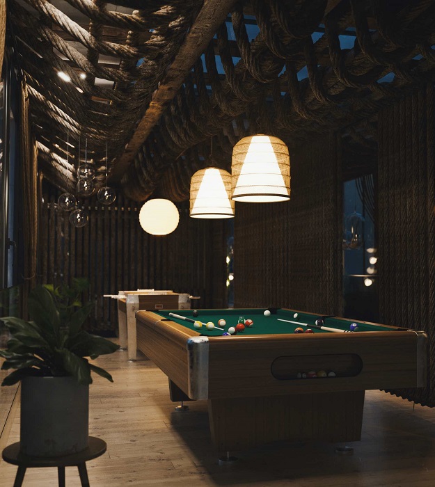 По сведениям авторов Novate.ru, еще одной особенностью проекта стало разделение особняка на три уровня, которые будут соответствовать потребностям нескольких поколениям одной семьи. Один из уровней резиденции предназначен для старшего поколения, большая часть пространства адаптирована под нужды молодой семьи с детьми. Эти зоны соединены между собой галереями, из которых есть выход в третий блок, расположенный над жилыми пространствами. Эта часть особняка предназначена для активного семейного отдыха (игровая комната, бильярдная, тренажерный зал). А для водных развлечений установлен еще один модуль с бассейном, стенки и дно которого сделаны из стекла.