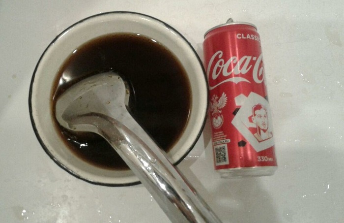 Положите лейку в емкость с кока-колой на полчаса. / Фото: kupisantehniky.ru
