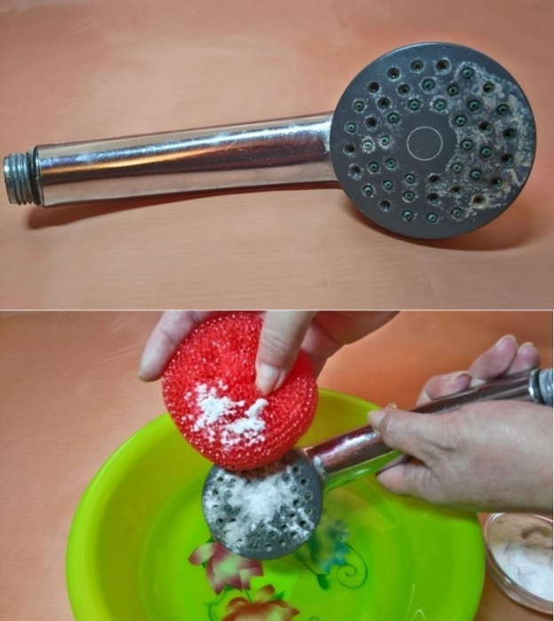 Пять ложек соды нужно растворить в 500 мл горячей воды, а затем положить туда лейку в разобранном или цельном виде. В зависимости от интенсивности загрязнений, сантехнику нужно оставить в растворе на 40-60 минут. По истечении времени протрите лейку тряпкой. При необходимости повторите процедуру.