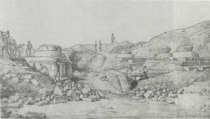 Рисунок одного из сфинксов во время раскопок. /Фото: livejournal.com