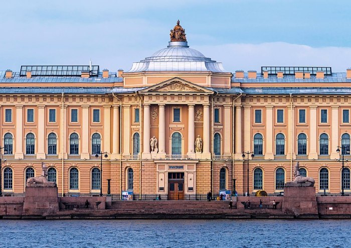 Академия художеств и пристань со сфинксами. /Фото: wikipedia.org