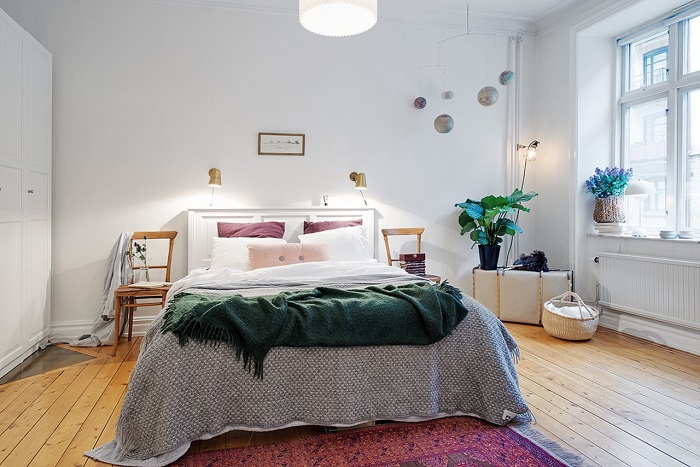 Здесь можно провести параллель с нашим внешним видом. Когда на блузе нет ни одной складки, волосы собраны в идеально гладкий пучок, макияж максимально аккуратный – это выглядит опрятно, но…скучно. Иногда даже зубы сводит от того, насколько такой образ правильный. Так же и с интерьером: в попытке поддержать порядок и удовлетворить запросы внутреннего перфекциониста, мы даже не допускаем мысли, что спальне нужна легкая, а главное – продуманная небрежность. В этом случае на помощь придет обычный плед. Можно выбрать нейтральную модель, которая впишется по цветовой гамме в интерьер, или контрастный экземпляр, чтобы он стал ярким акцентом. Постарайтесь максимально небрежно положить его на кровать, как будто вы случайно его туда бросили с утра. Получится убить сразу двух зайцев: разбавить большую поверхность покрывала, чтобы она выглядела эстетично, и всегда иметь под рукой плед, который может пригодиться, например, во время дневного отдыха.