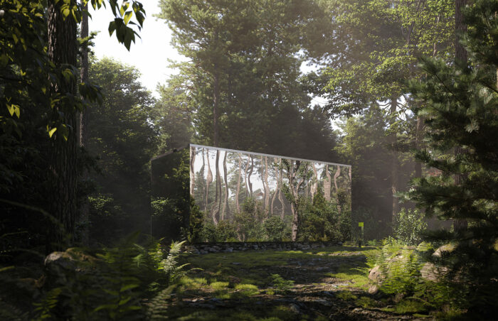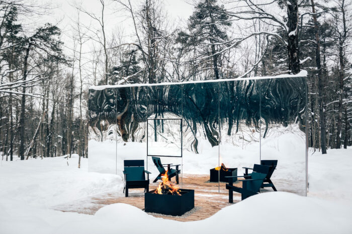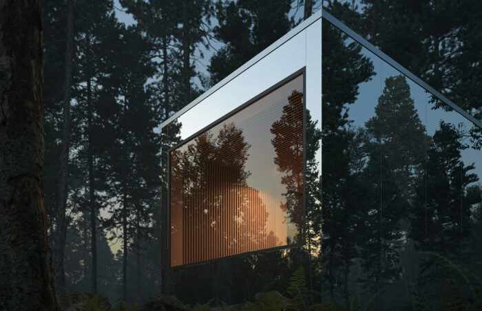 Зеркальная обшивка лесных домиков призвана «растворить» их в пейзаже, но навредить птицам никак не сможет (Arcana, Канада). | Фото: surfacemag.com.