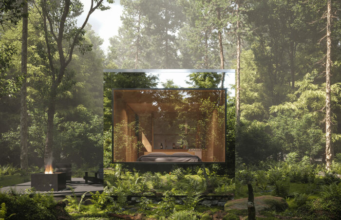 Ванкуверской студией Leckie Studio и дизайнерским агентством Aruliden был представлен удивительный концептуальный проект, который уже в августе этого года станет явью, хотя его месторасположение до сих пор и не оглашается. Известно, что новый отель появится в лесу Онтарио, в двух часах езды к северу от Торонто (Канада). Интригующая таинственность подогревается еще и внешним видом номеров, которые «растворятся» среди живописной природы.