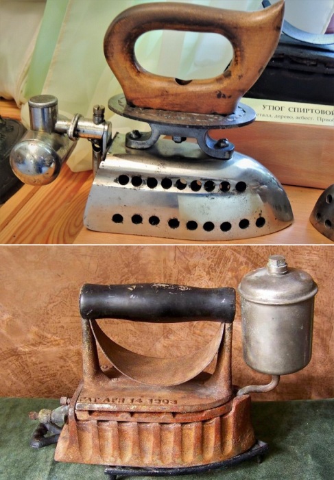 На смену утюгам с углями пришли спиртовые, керосиновые и даже с примитивной функцией отпаривания.