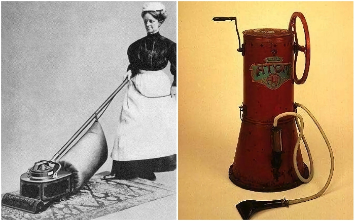 Еще один агрегат, без которого не обходится современный человек, – это пылесос. Прекрасное изобретение, которое не просто облегчает домашний труд, но и позволяет сохранить здоровье домочадцев. Этот предмет быта также прошел немалый путь, чтобы стать тем, какой он есть сейчас, с его габаритами и функционалом. Несмотря на утверждение «лень – двигатель прогресса», в случае с этим бытовым прибором не очень то сложилось. В далеком 1860 г. Дэниел Хесс (США) запатентовал уникальный по тем временам агрегат, который он назвал – Carpet Sweeper, он же «Подметатель ковров». Полезное приспособление, состоящее из вращающихся щеток, меховой системы (позволяла засасывать пылинки без двигателя) и водяных камер, являлось настоящим «мокрым» пылесосом, который отлично справлялся с уборкой помещений. Но не сложилось, производители не заинтересовались изобретением и дальше экспериментального экземпляра дело не пошло.