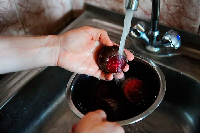 Отправьте готовую свеклу под струю холодной воды. / Фото: mylivingfood.ru