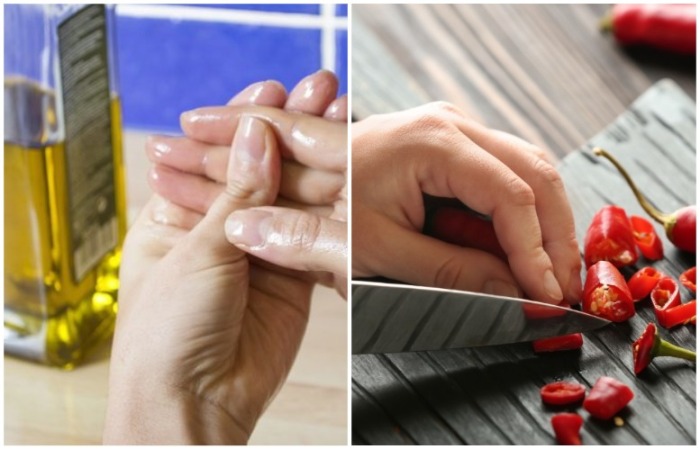 Если вы или члены вашей семьи являетесь фанатами острых блюд, то наверняка вам доводилось использовать острый перец, например, чили или халапеньо. И, скорее всего, этот процесс сопровождался жжением на пальцах или даже ожогами, так как неосторожное обращение с острым перцем чревато последствиями. К счастью, это можно предотвратить, имея на кухне небольшой запас оливкового масла. Смазывайте им руки до и после работы с перцем. А чтобы устранить жжение в глазах, используйте компрессы из ватных дисков, предварительно пропитанных молоком.