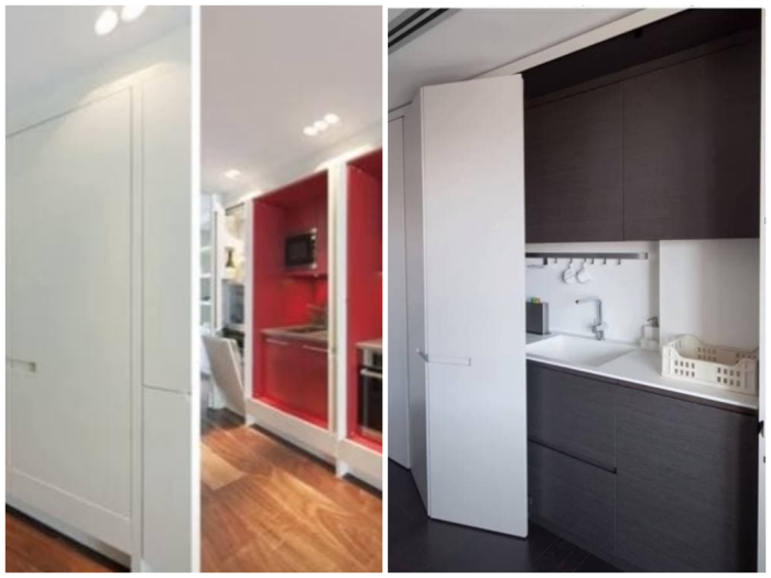 5. Зонирование плюс скрытие кухонной секции за дверьми любого типа