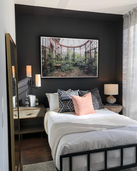 Черный отлично подойдет для спальни в стиле минимализм. / Фото: dizainexpert.ru