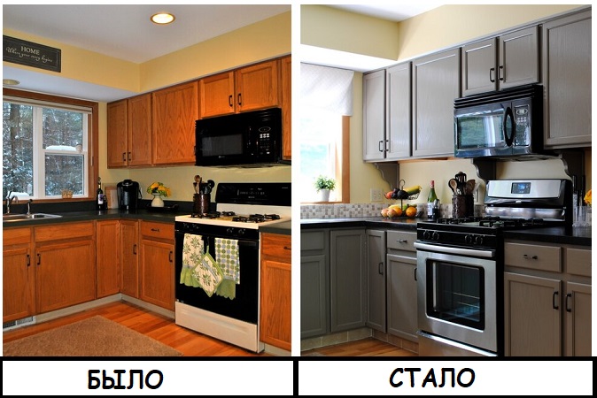 Кухонный гарнитур до и после покраски. / Фото: vestnikao.ru