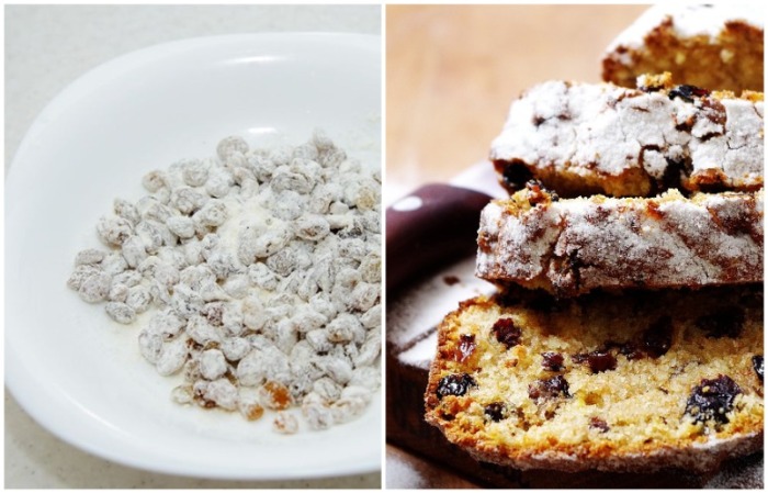 Перемешайте изюм с мукой, чтобы он не оказался на дне выпечки. / Фото: willcomfort.ru