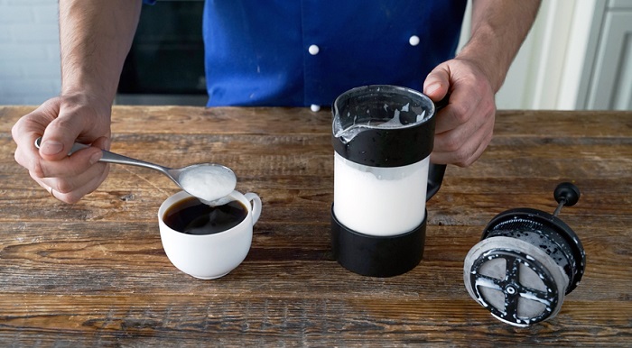 Во френч-прессе получается стойкая и пышная пена из молока. / Фото: kaksekonomit.com